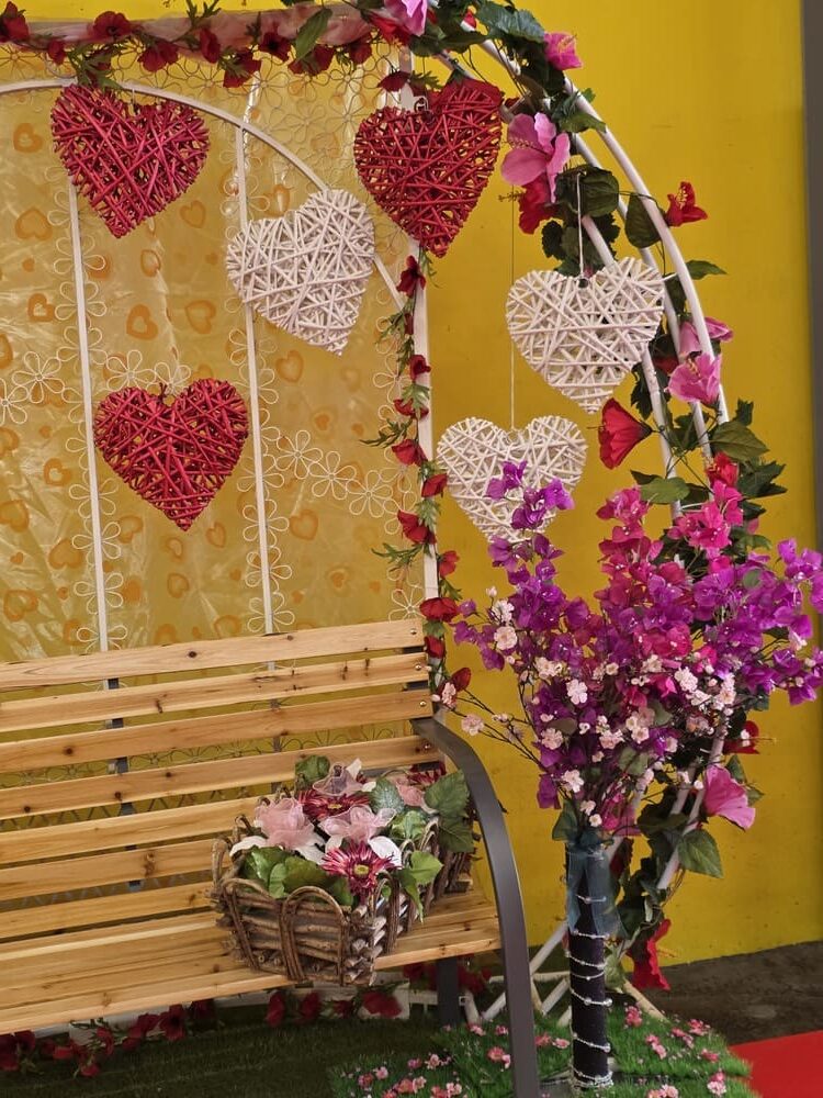 Nous avons également imaginé une grande arche photo dédiée à la Fête des mères, décorée de fleurs et de cœurs, accompagnée d’un joli banc permettant aux visiteurs de s’installer et de créer de beaux souvenirs.